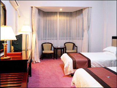 賓館富貴典雅、風(fēng)格獨特、服務(wù)設施完善??头繐碛泻廊A套間、商務(wù)單間、普通標間共106個(gè)床位;餐廳設